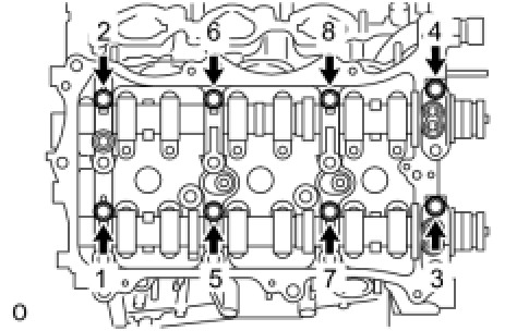 (c) Uniformly loosen and remove the 8 bearing cap bolts in the sequence shown in the illustration.