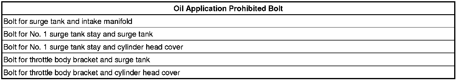 NOTE: Do not apply oil to the bolts as listed below: