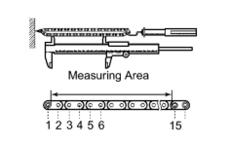HINT: The vernier caliper must contact the chain rollers for the measurement.