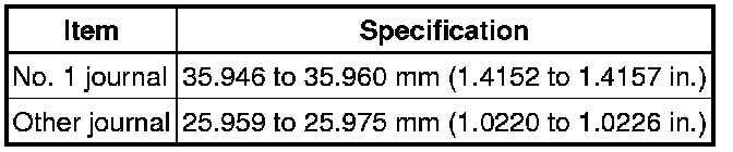 If the journal diameter is not as specified, check the oil clearance.