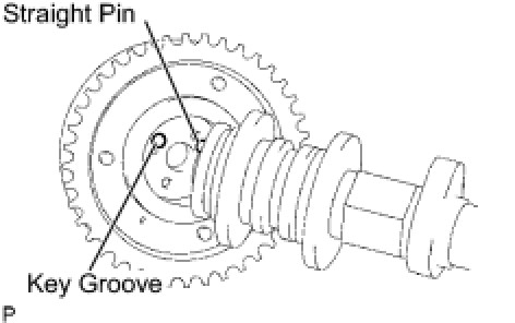 (b) Put the camshaft timing gear and camshaft together by aligning the key groove and straight pin.