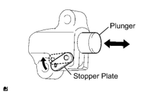 (a) Move the stopper plate upward to release the lock. Push the plunger and check that it moves smoothly. If necessary, replace the No. 1 chain tensioner assembly.