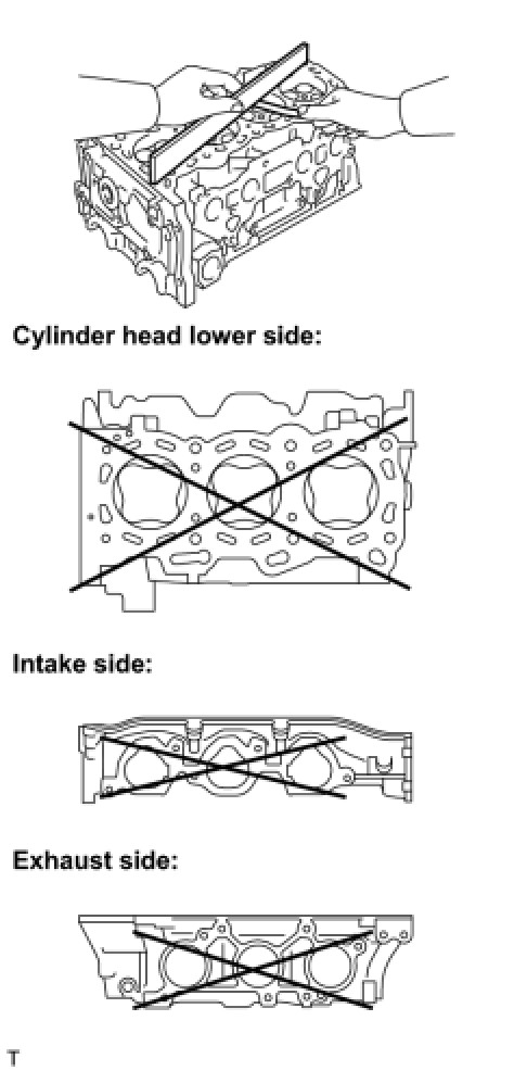 (a) Using a precision straight edge and feeler gauge, measure the warpage of the contact surface of the cylinder block and manifolds.