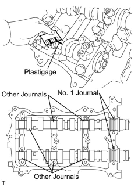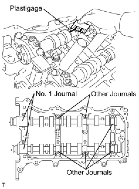 (c) Lay a strip of Plastigage across each of the camshaft journals.