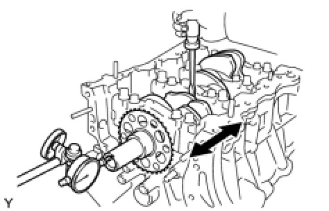 (b) Using a dial indicator, measure the thrust clearance while moving the camshaft back and forth.