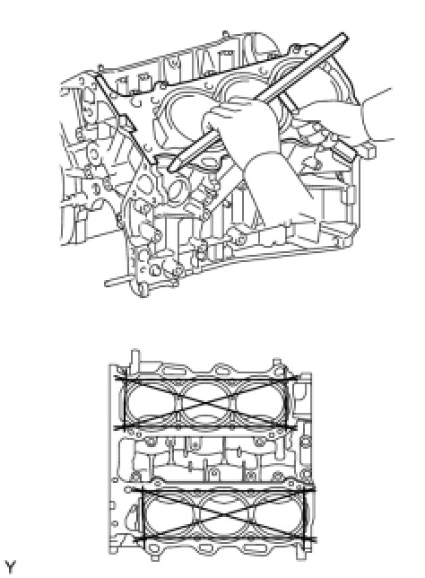 If deep scratches are present, rebore all the 6 cylinders. If necessary, replace the cylinder block.