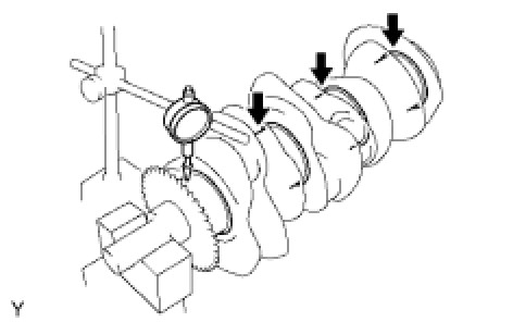 (3) Using a dial indicator, measure the circle runout at the center journal.