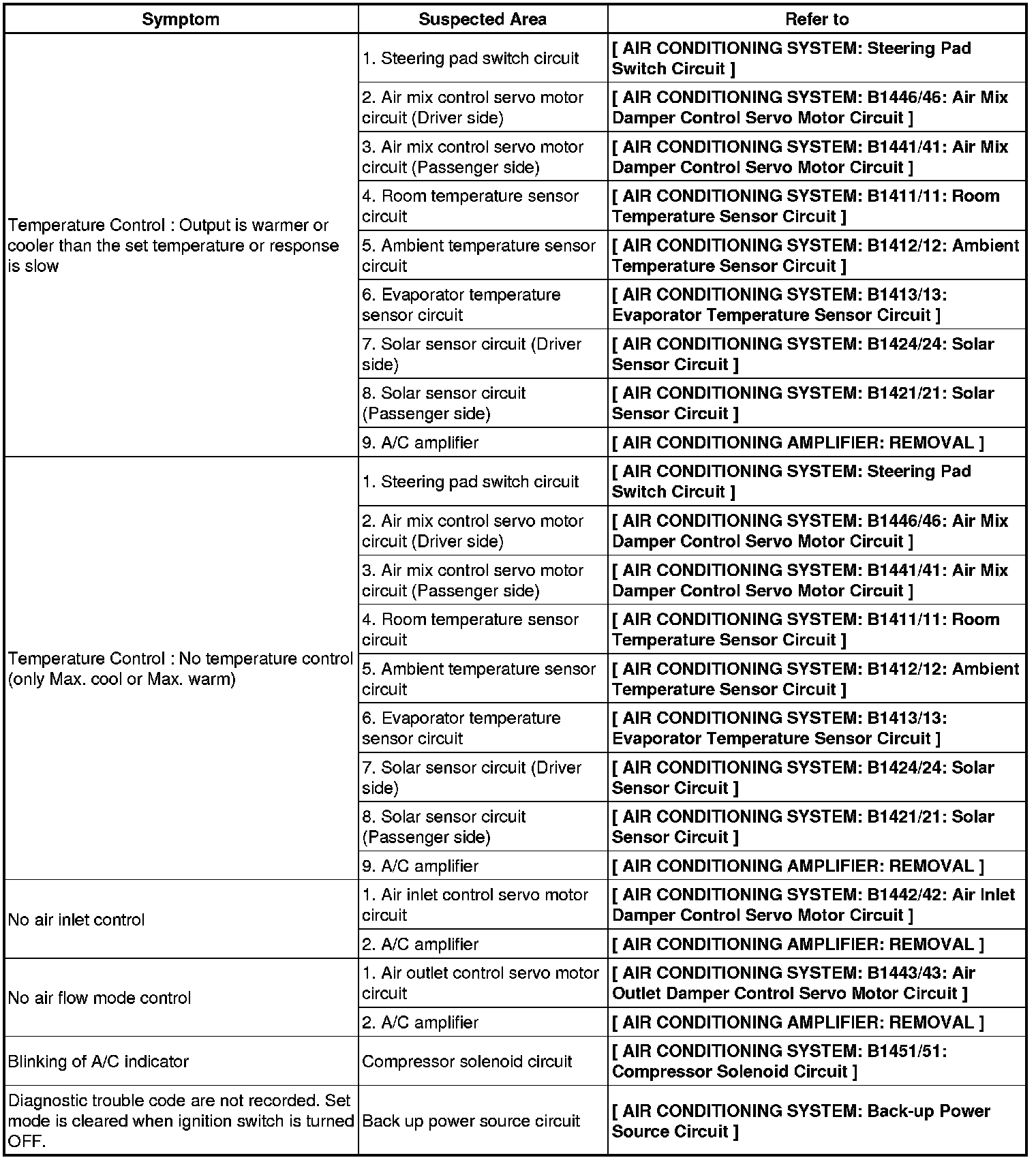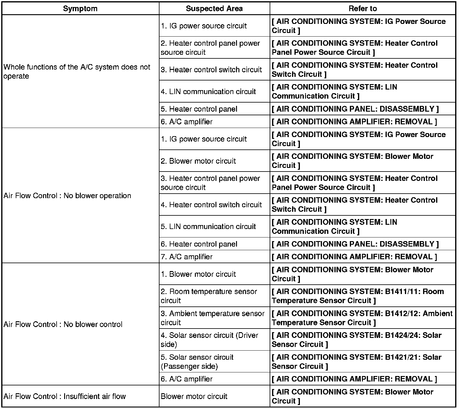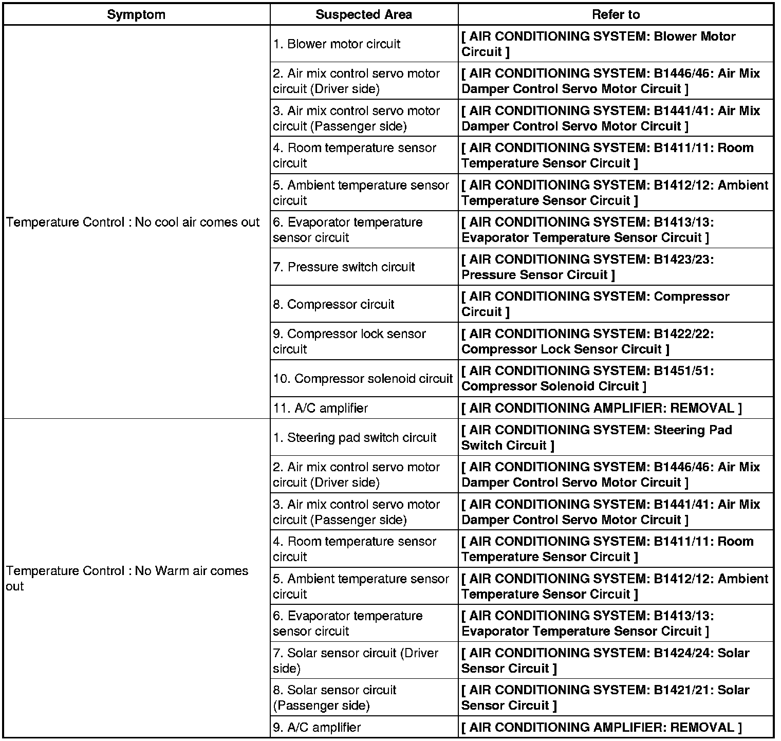 AIR CONDITIONING: AIR CONDITIONING SYSTEM: PROBLEM SYMPTOMS TABLE
