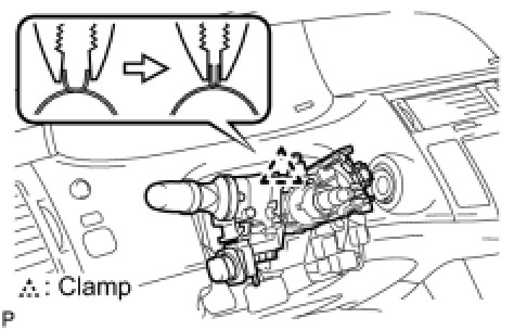(b) Disengage the clamp from the headlight dimmer switch assembly as shown in the illustration.