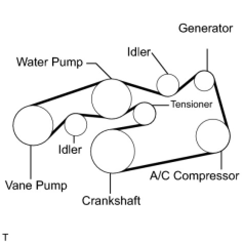 (1) Put the V-ribbed belt on everything except the tensioner pulley as shown in the illustration.
