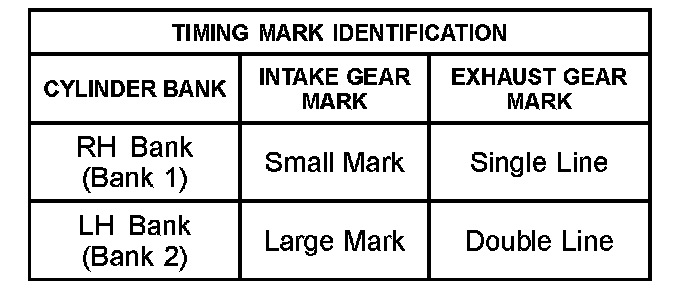 B. Verify the timing marks on the camshaft timing gears are in general alignment with the timing marks of the camshaft bearing cap: