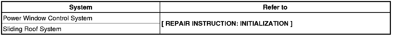 NOTE: When the negative (-) battery terminal is disconnected, initialize the following systems after the terminal is reconnected.