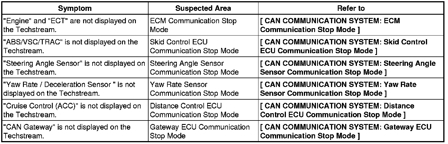 CAN COMMUNICATION: CAN COMMUNICATION SYSTEM: PROBLEM SYMPTOMS TABLE
