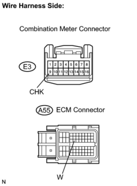 4. CHECK HARNESS AND CONNECTOR (COMBINATION METER - ECM)