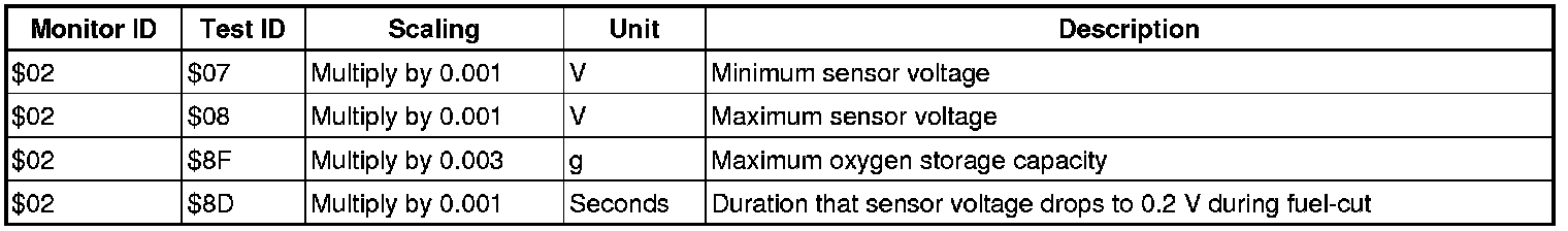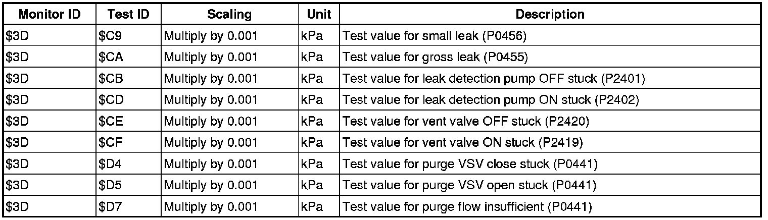 If you use a generic scan tool, multiply the test value by the scaling value listed below.