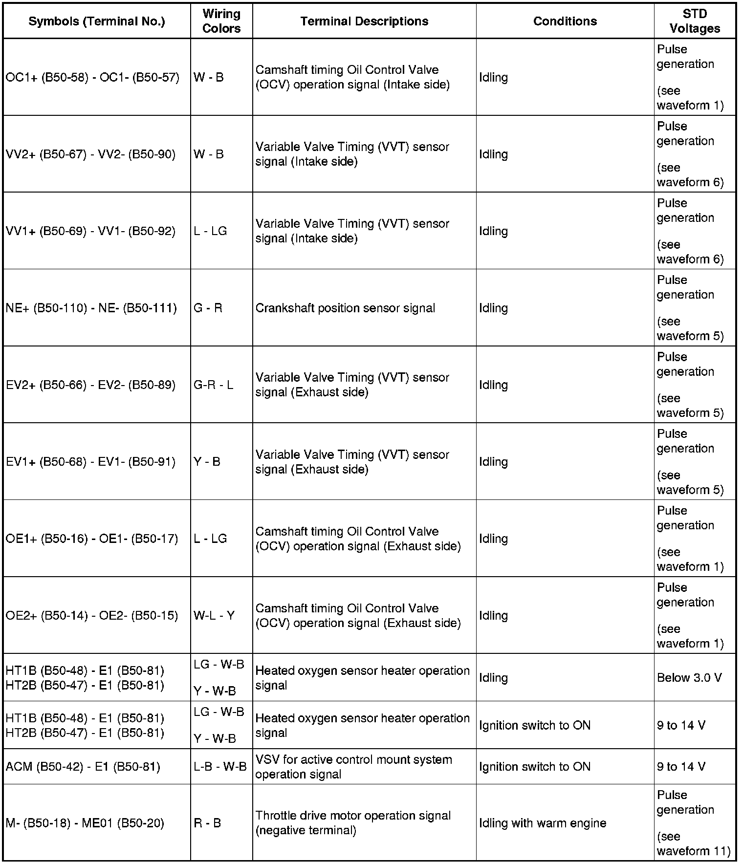 (1) Variable Valve Timing (VVT) sensor signal (1)