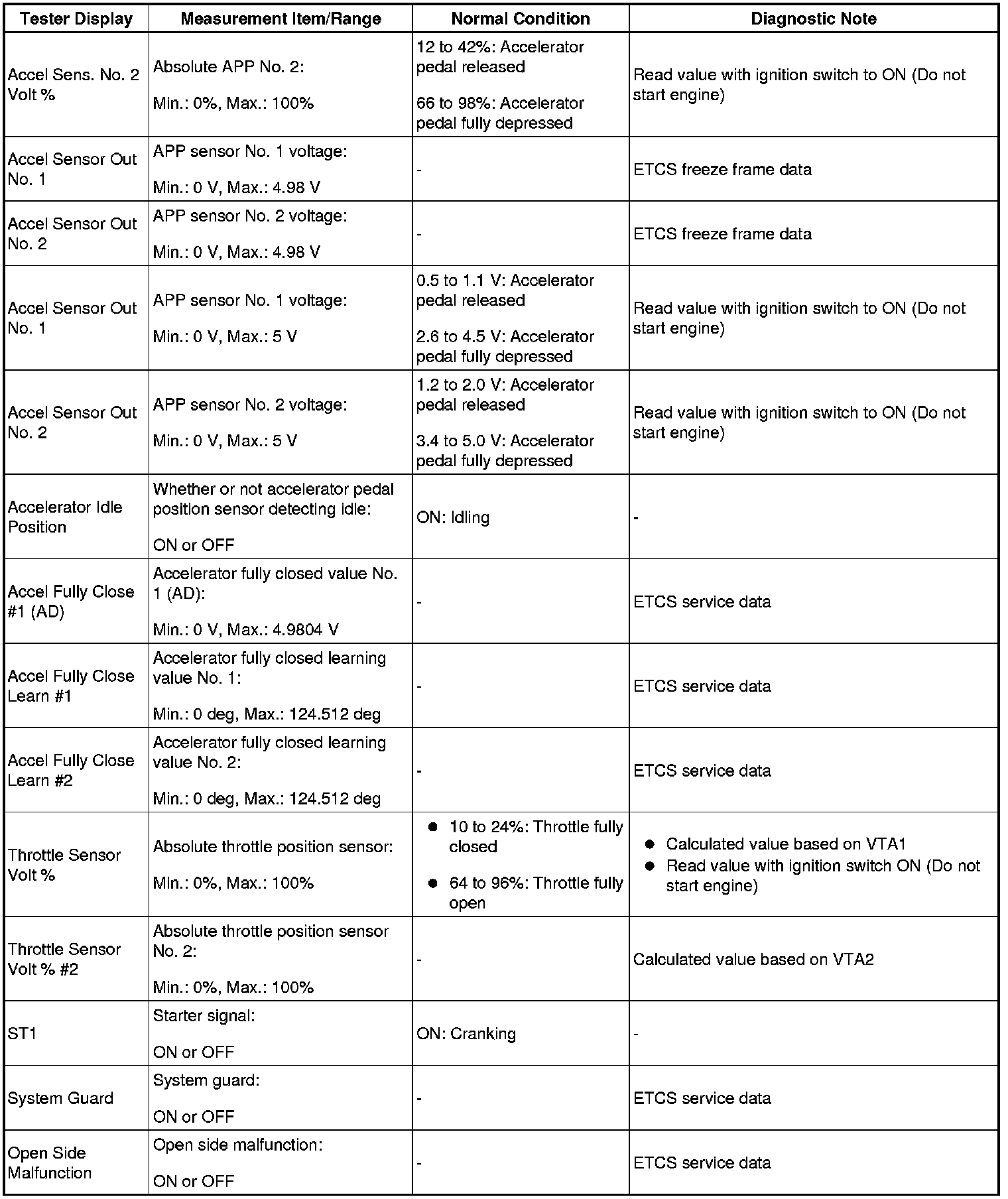 HINT: By reading the Data List displayed on Techstream, you can check values, including those of the switches, sensors, and actuators, without removing any parts. Reading the Data List as the first step in troubleshooting is one method of shortening diagnostic time.