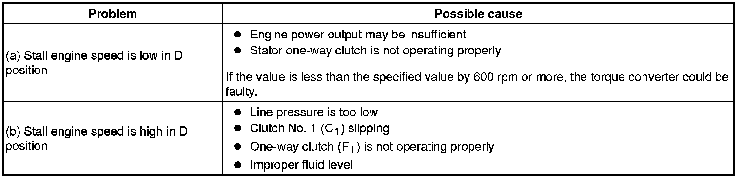 The object of this test is to check the overall performance of the transaxle and engine by measuring the stall speeds in the D position.