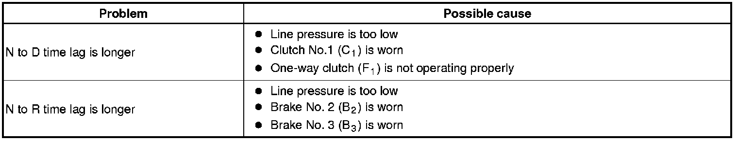 (5) Shift the lever from N to D position. Using a stop watch, measure the time from when the lever is shifted until the shock is felt.