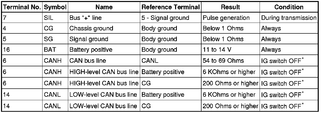 NOTE: *: Before measuring the resistance, leave the vehicle as is for at least 1 minute and do not operate the ignition switch, any other switches or the doors.