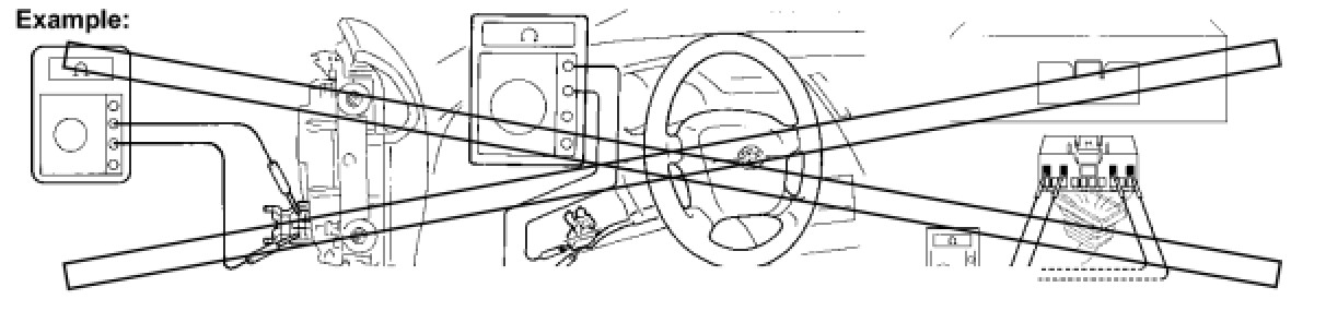 (2) Never measure the resistance of the airbag squib. This may cause the airbag to inflate, which could cause serious injury.