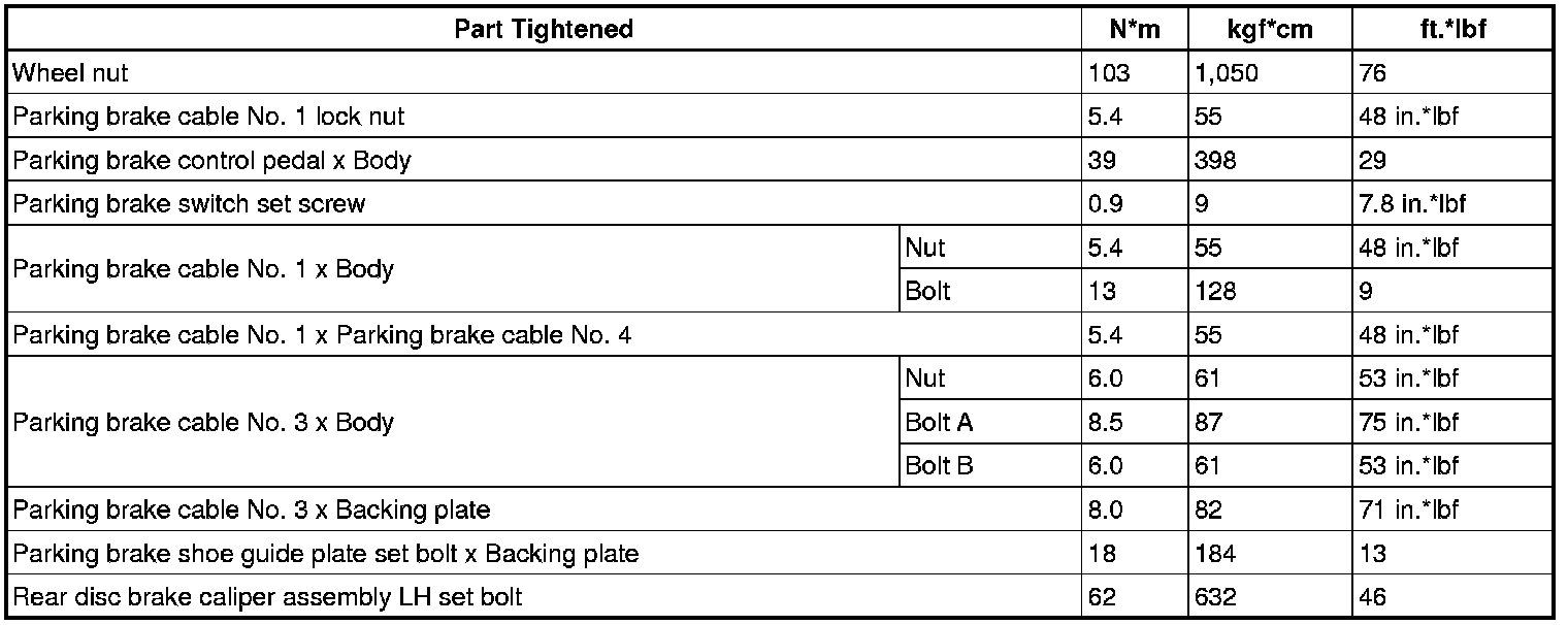 SERVICE SPECIFICATIONS: PARKING BRAKE: TORQUE SPECIFICATIONS
