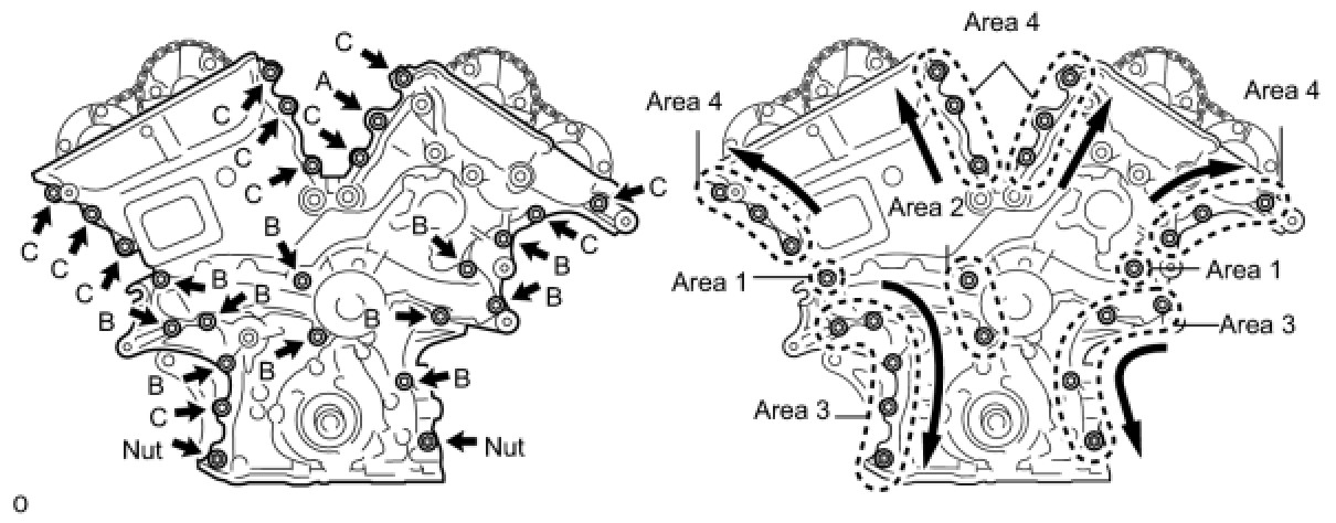 Fully tighten the bolts in this order: Areas 1 and Area 2.