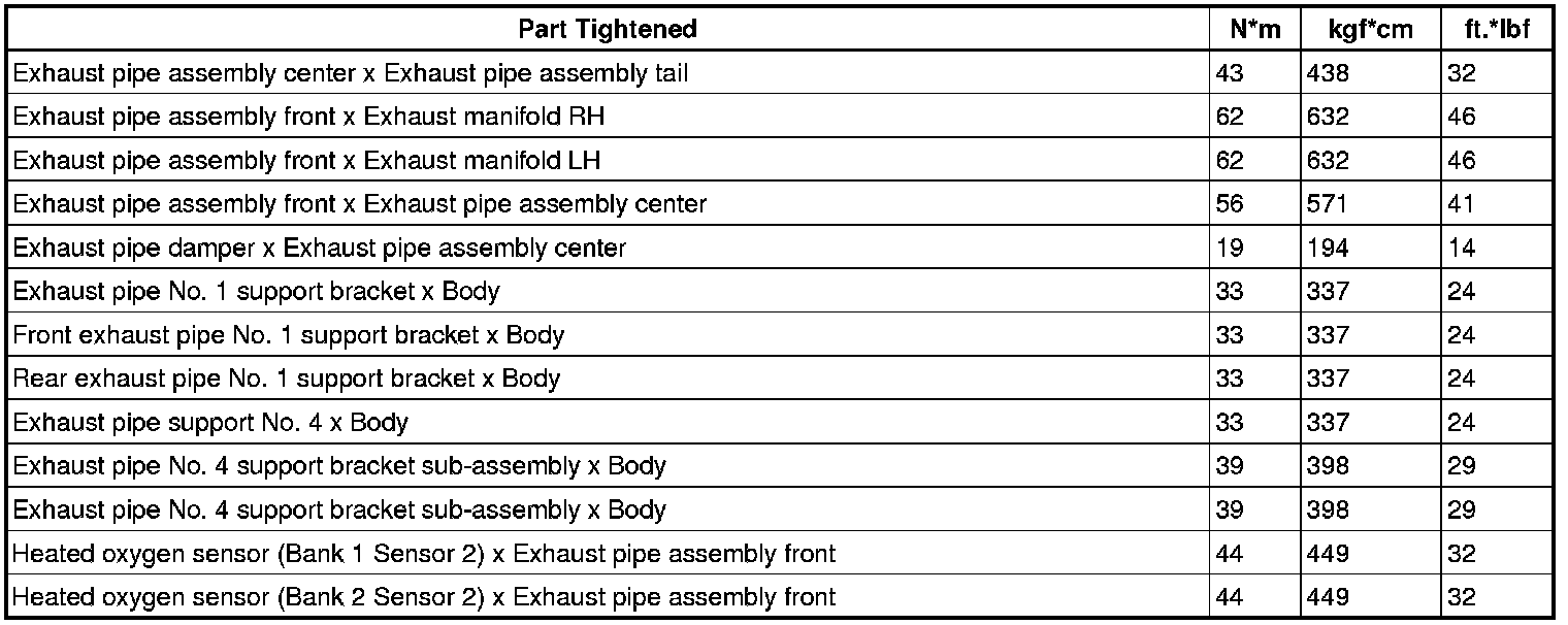 SERVICE SPECIFICATIONS: 2GR-FE EXHAUST: TORQUE SPECIFICATIONS