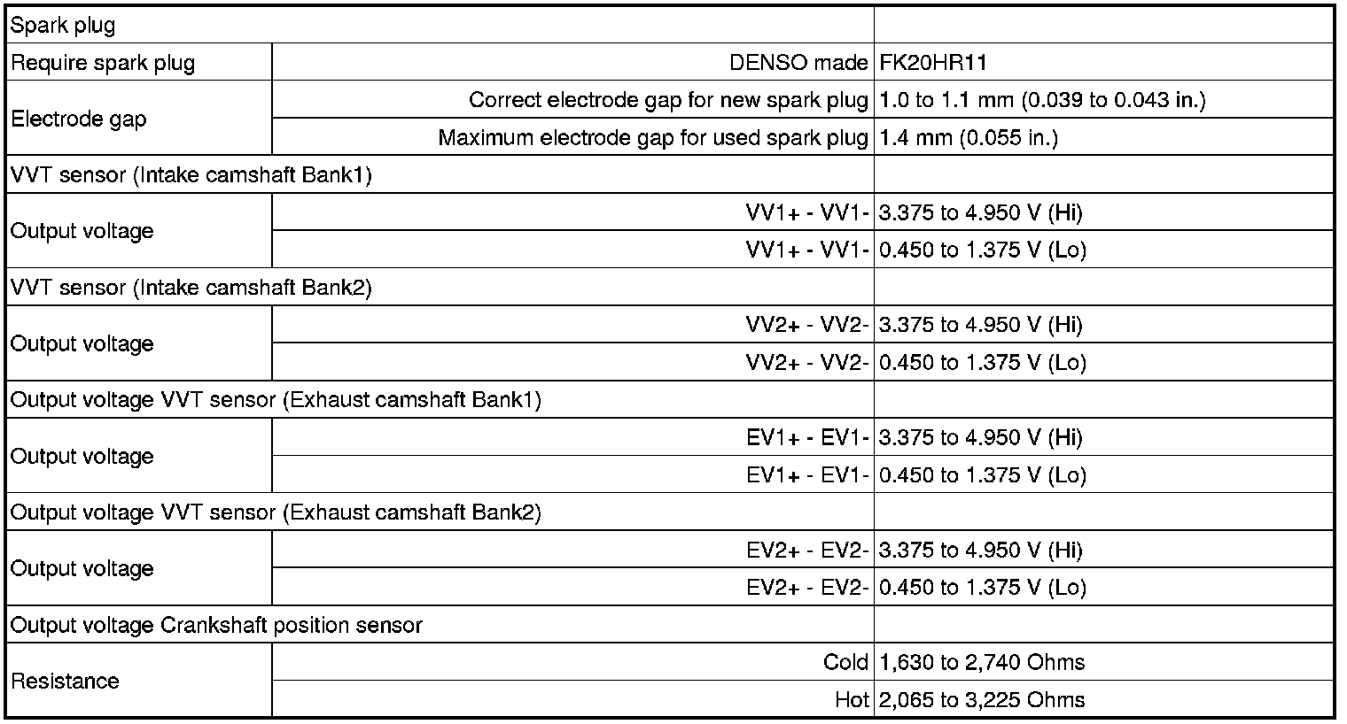 SERVICE SPECIFICATIONS: 2GR-FE IGNITION: SERVICE DATA