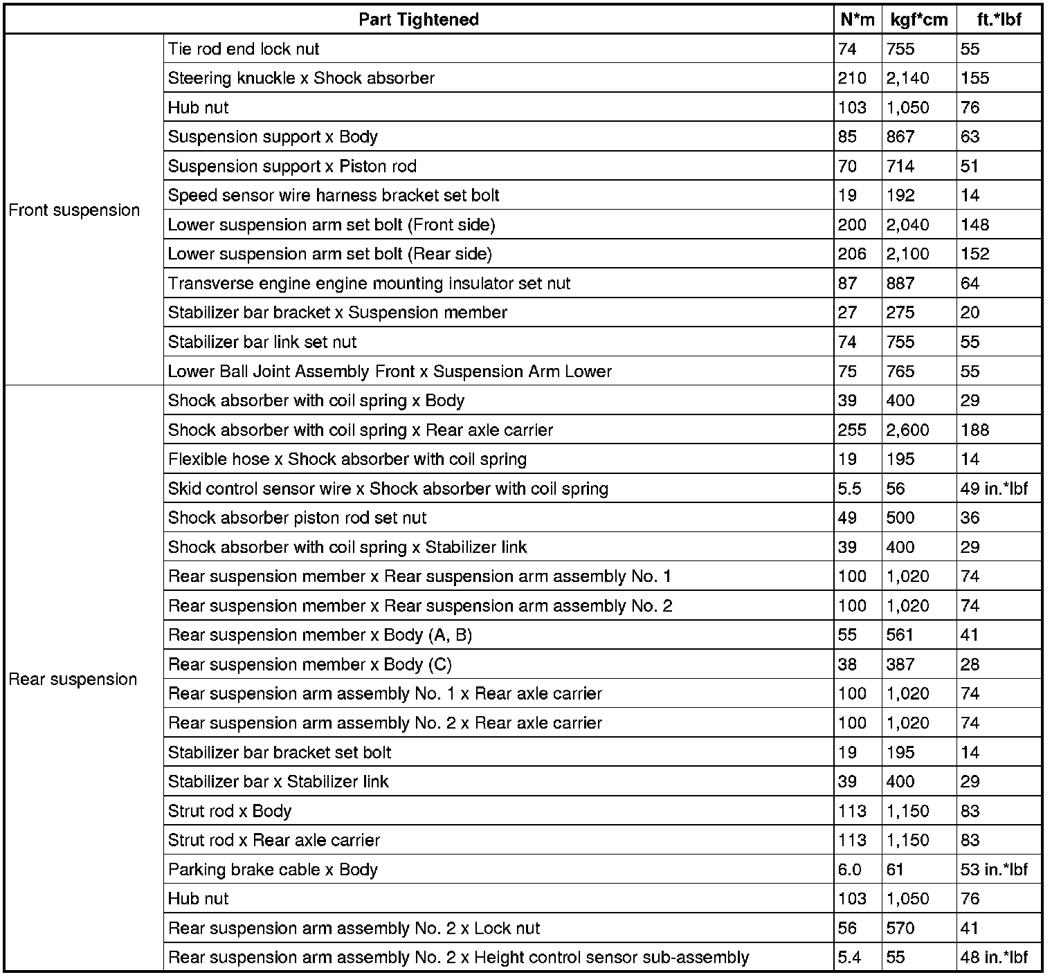 TORQUE SPECIFICATIONS