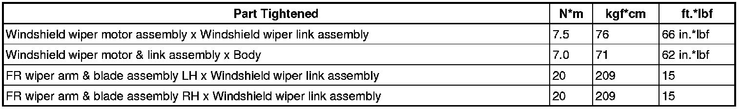 SERVICE SPECIFICATIONS: WIPER AND WASHER: TORQUE SPECIFICATIONS