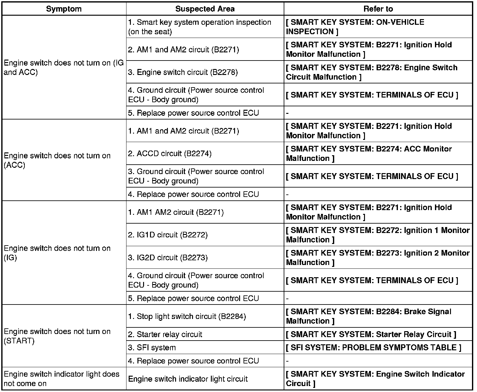 2GR-FE STARTING: SMART KEY SYSTEM: PROBLEM SYMPTOMS TABLE