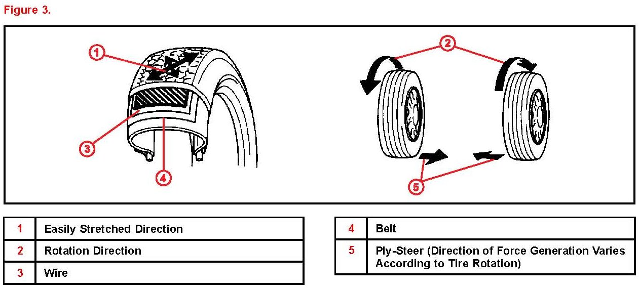 - Ply-steer which changes direction according to the rotation direction of the tires.