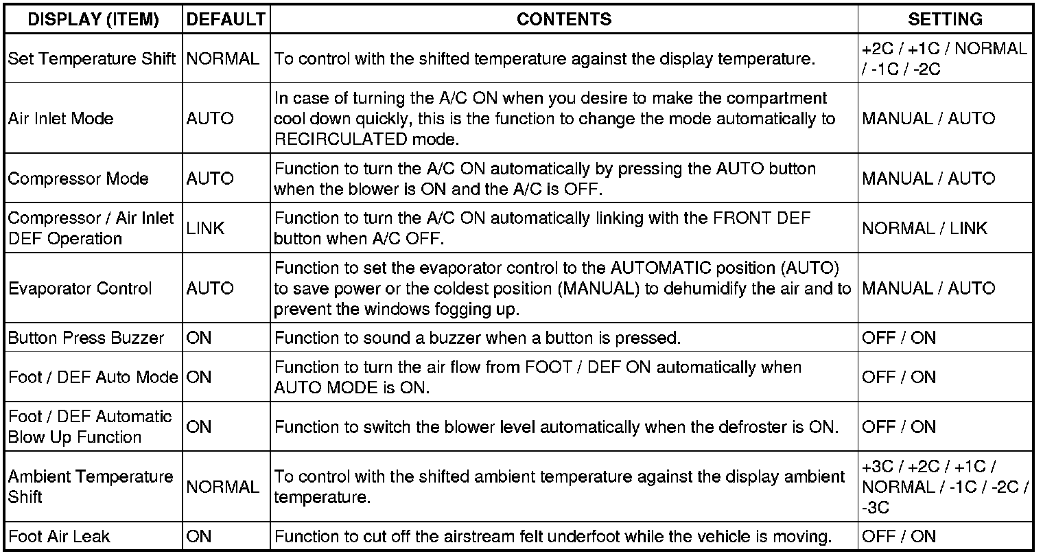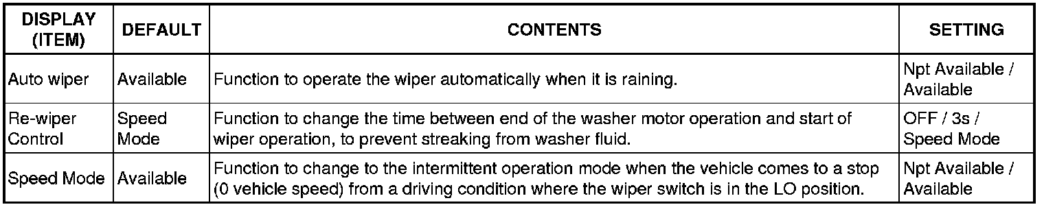 (1) The buzzer ON / OFF setting, which is a setting of the buzzer function of the combination meter, can disable the driver's seat belt buzzer and front passenger's seat belt buzzer.
