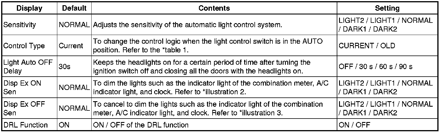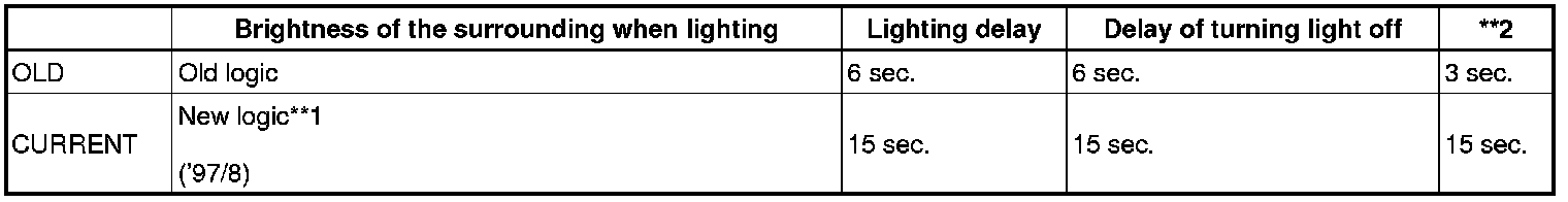 **2: Delay time until the headlight is turned on when the outside suddenly gets dark.