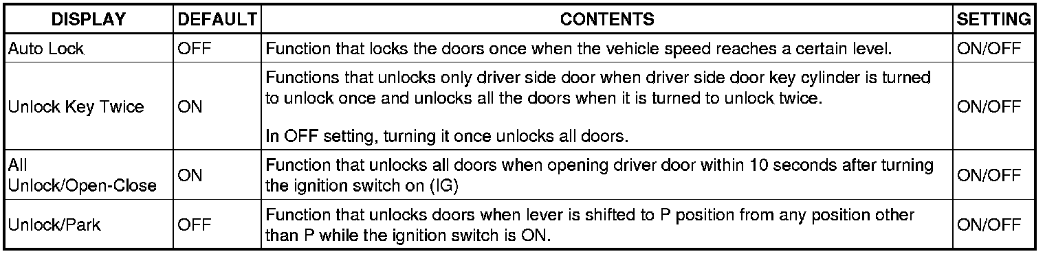 - To set function (Shift-linked Automatic Door Lock)