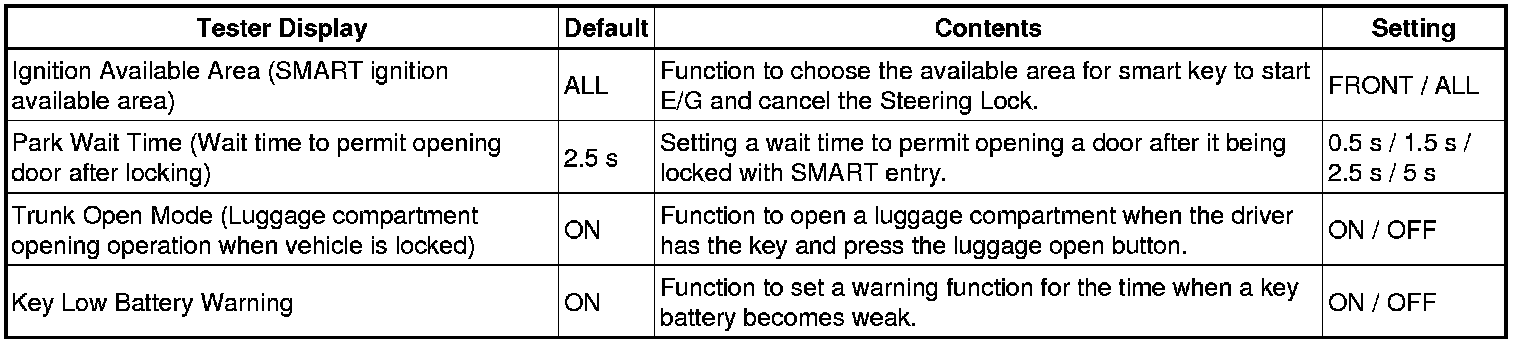 - The function only switches the entry unlock of the smart key system. It does not switch the unlocking of the wireless door lock remote control.