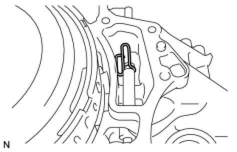 - Be sure to align the opening of the snap ring with one of the protrusions on the transaxle case as shown in the illustration.