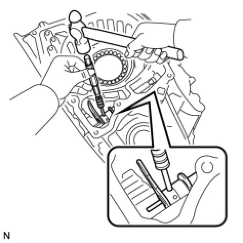 (f) Using a pin punch 3 mm and hammer, install a new slotted spring pin into the parking lock lever sub-assembly.