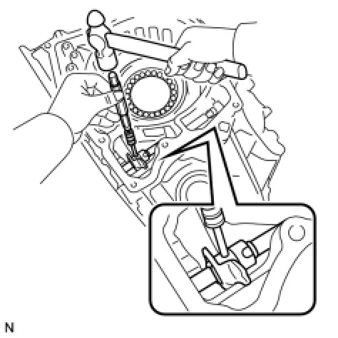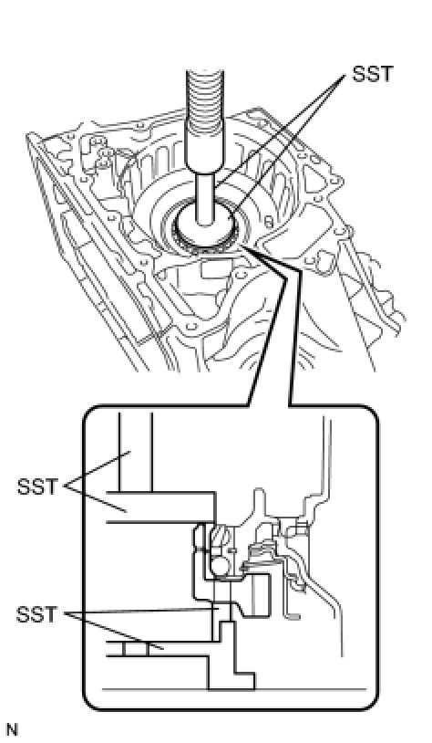 (a) Using SST and a hammer, install the counter driven gear rear tapered roller bearing outer race to the transaxle case.