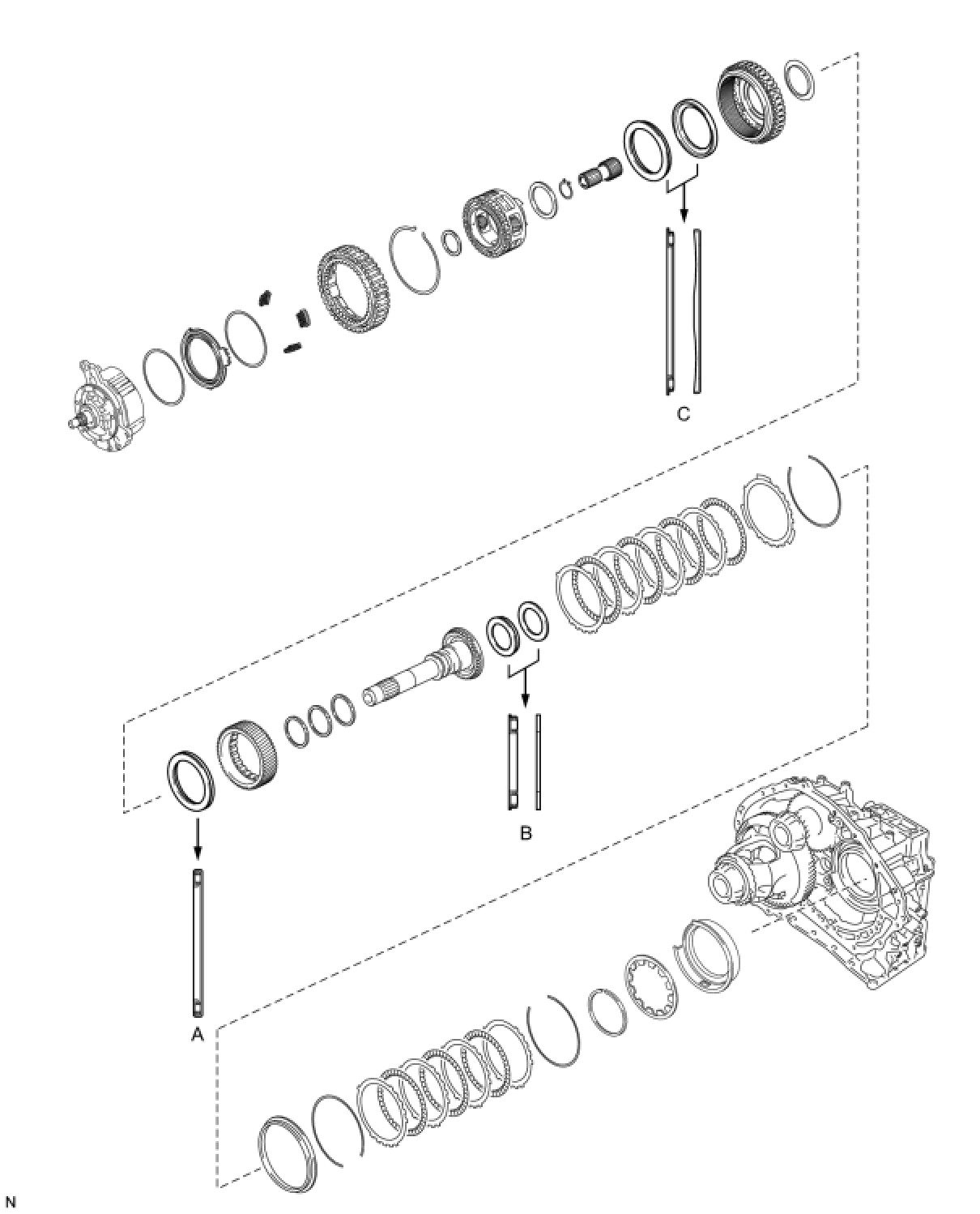 - Make sure that the lip of the No. 3 brake piston is not twisted and does not get caught in the transaxle case.