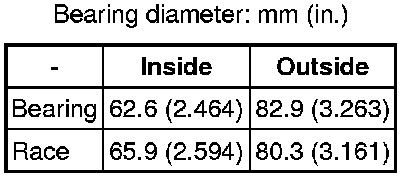 Bearing diameter: mm (in.)