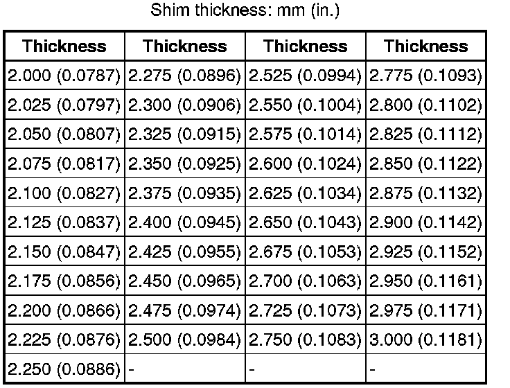 If the turning torque is not within the specified range, refer to the table below to select a shim of the counter driven gear front tapered roller bearing outer race so that the turning torque is within the specified range.
