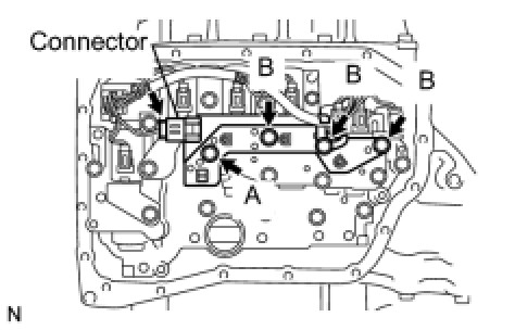 (c) Install the ATF temperature sensor assembly and clamp to the valve body with the 4 bolts.