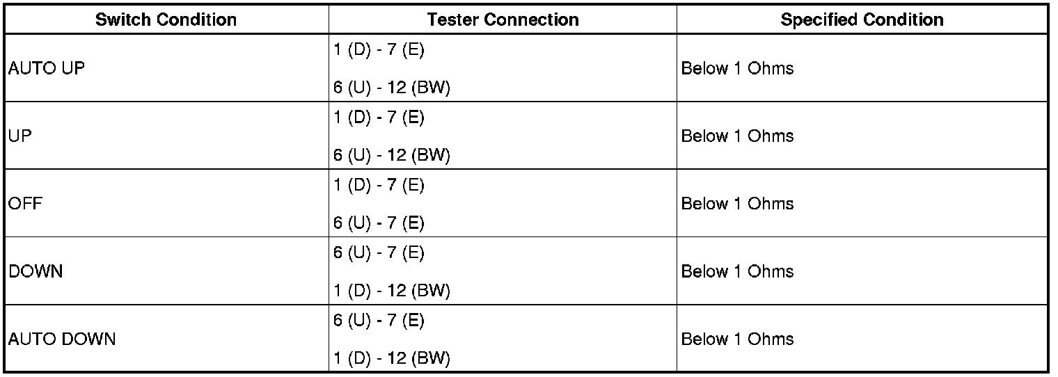 Power Window Switch: Testing and Inspection