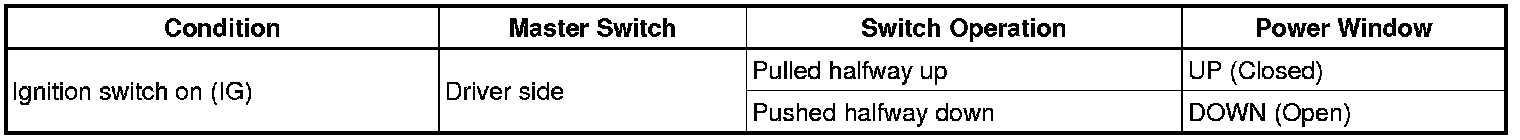 - AUTO UP/MANUAL UP function after the ignition switch is turned off (FRONT DOORS)