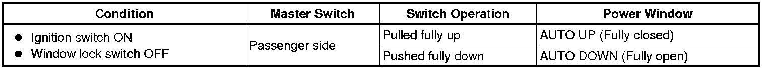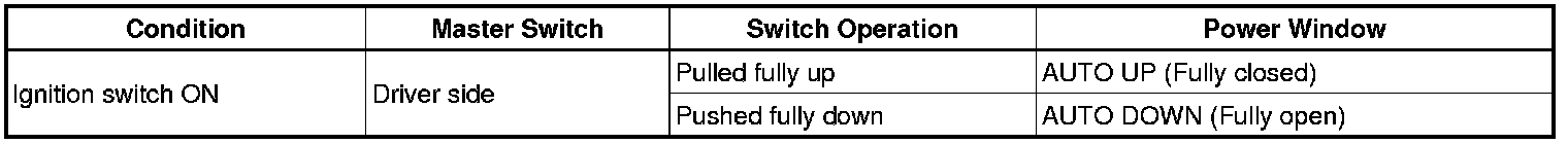 NOTE: If the power window motor has been reset, raise and lower the door glass several times using MANUAL function before performing the check.