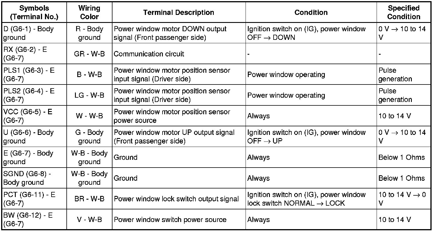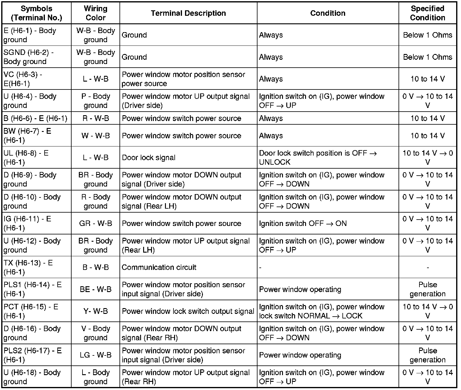 / WINDOWGLASS: POWER WINDOW CONTROL SYSTEM: TERMINALS OF ECU