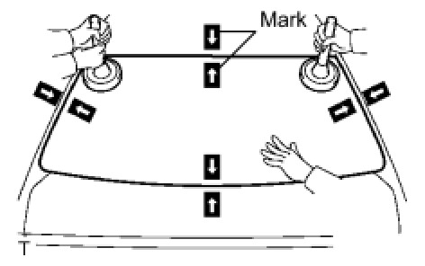 (2) Lightly press the front surface of the glass to ensure that the glass is securely fit to the vehicle body.