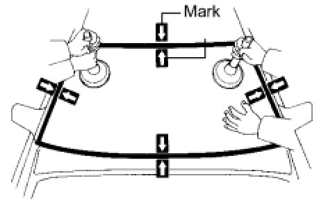 (3) Place reference marks on the glass and vehicle body.